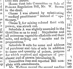 On 18 March, 1881 the BC legislature had a brief discussion of amendments to the 1881 Poison Act.